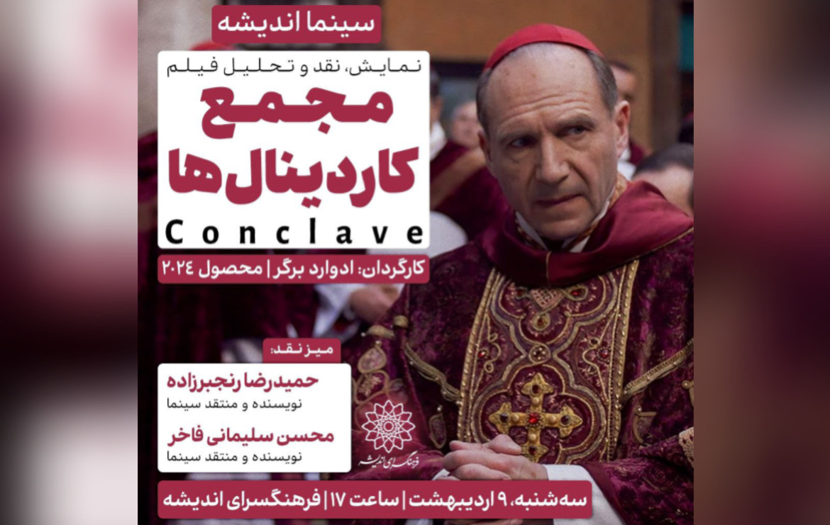 فیلم سینمایی «مجمع کاردینالها» (Conclave) به کارگردانی ادوارد برگر، در فرهنگسرای اندیشه به نمایش درمیآید و نقد و بررسی میشود.