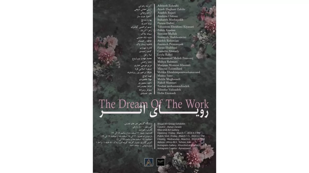 افتتاحیه نمایشگاه گروهی «رویای اثر» با شرکت ۲۶ هنرمند در رشتههای مختلف هنرهای تجسمی، روز جمعه، ۱۱ اسفند ماه سال جاری در گالری خورشید برگزار میشود.