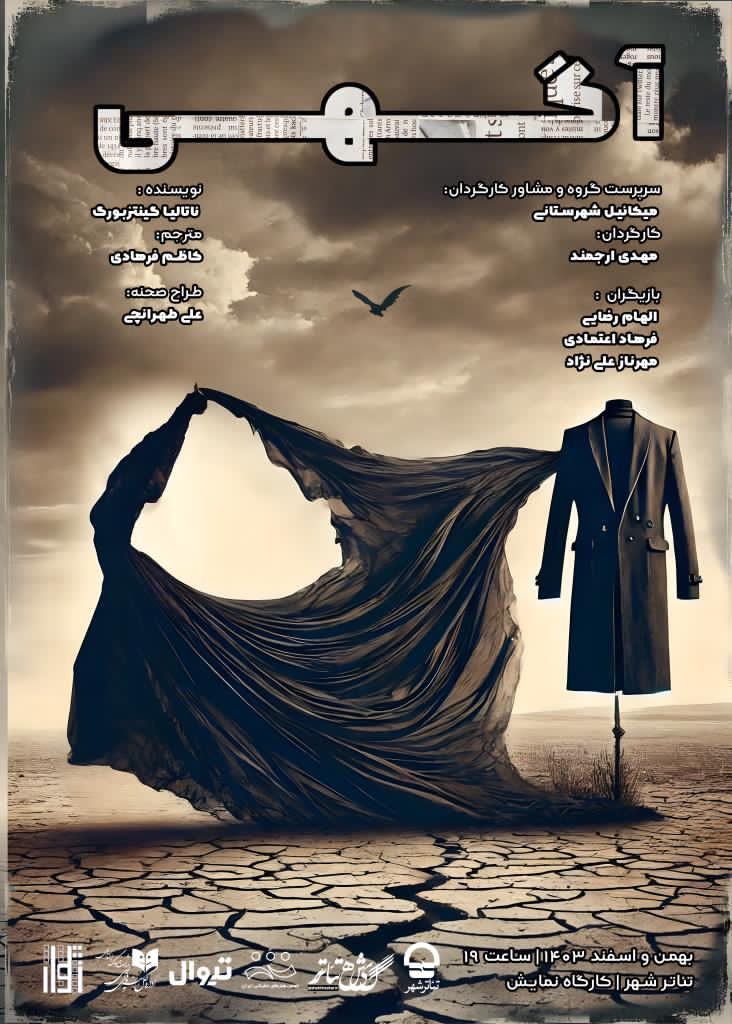 با آغاز اجرای «آگهی» پوستر این نمایش که توسط فرهاد اعتمادی طراحی شده است، رونمایی شد.