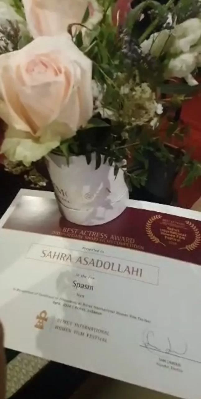 صحرا اسدالهی جایزه بهترین بازیگر نقش اول زن را از جشنواره بینالمللی زنان بیروت دریافت کرد.