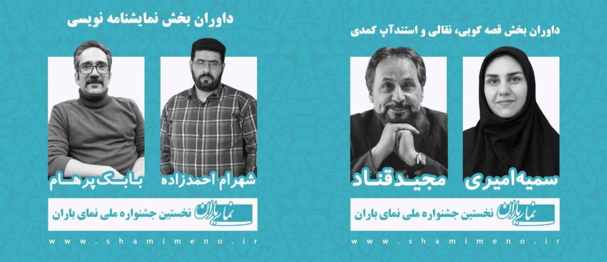 به این ترتیب مجید قناد و سمیه امیری در بخش قصه‌گویی، نقالی و استندآپ کمدی؛ شهرام احمدزاده و بابک پرهام در بخش نمایشنامه‌نویسی به داوری آثار ارسال شده به جشنواره می‌پردازند.