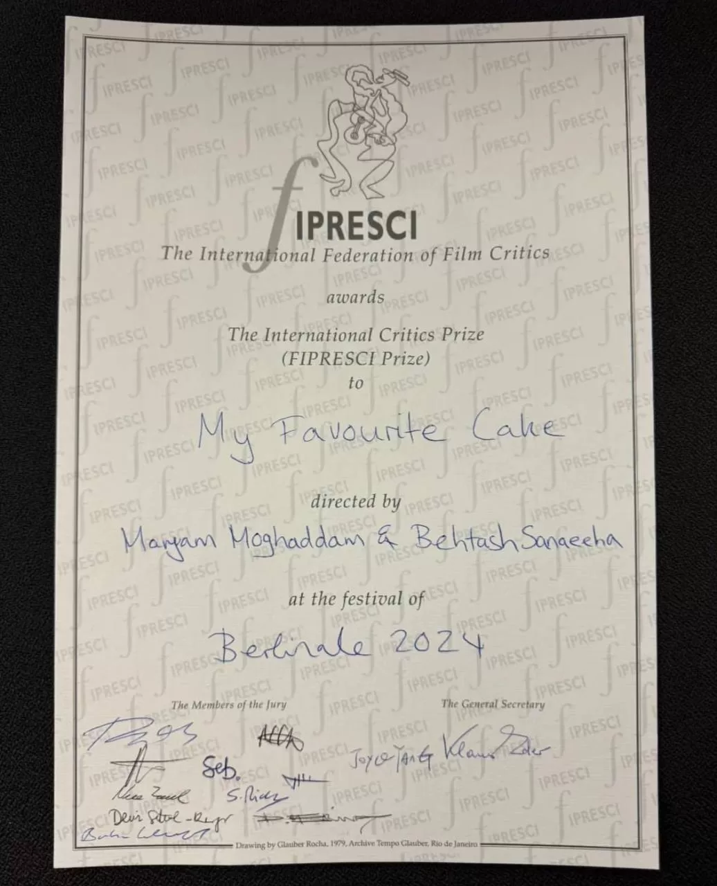 فیلم سینمایی «کیک محبوب من» ساخته بهتاش صناعیها و مریم مقدم برنده جایزه فیپرشی (جایزه بهترین فیلم از نگاه هیأت داوران منتقدان بینالمللی) جشنواره برلین شد.